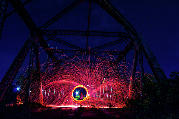 Special effects at night on an old bridge.